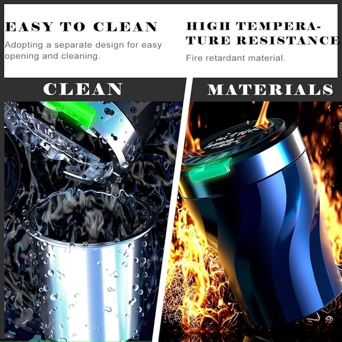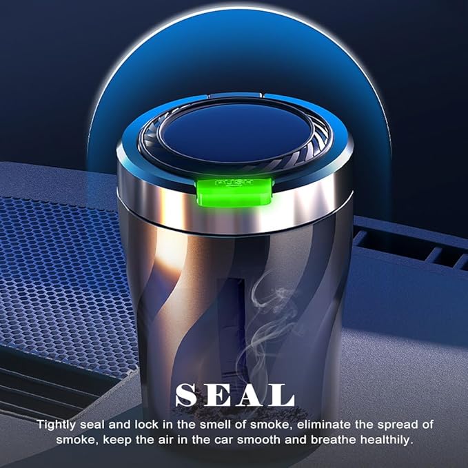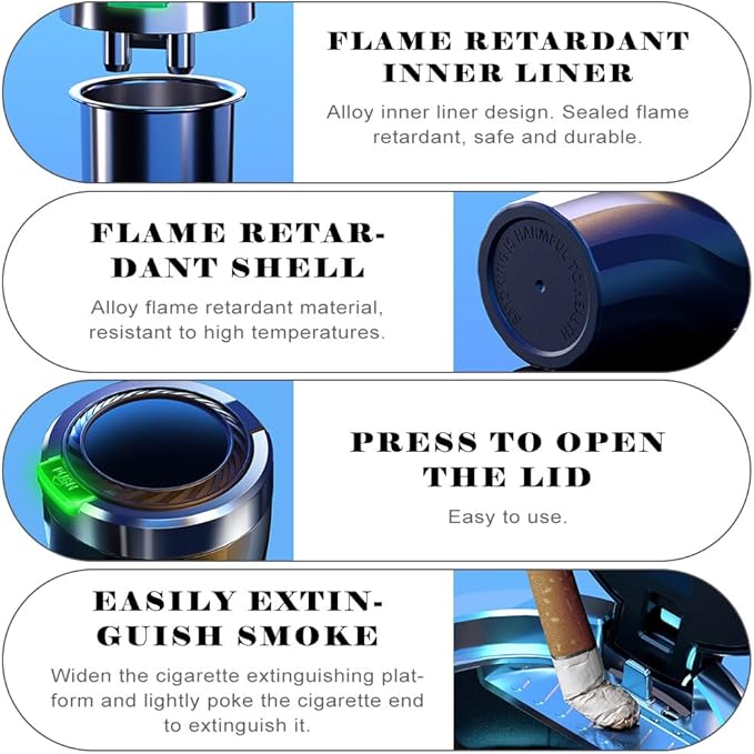 Ce cendrier voiture haut de gamme combine élégance et efficacité. Conçu en alliage d’aluminium robuste, il est équipé d’un couvercle hermétique pour bloquer les odeurs et d’un éclairage LED bleu pour une utilisation facile de nuit. Compatible avec la plupart des porte-gobelets, il est l’allié idéal des conducteurs exigeants.